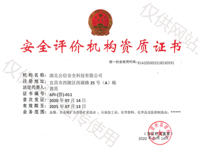 資質(zhì)名稱:安全評價機構(gòu)資質(zhì)證書